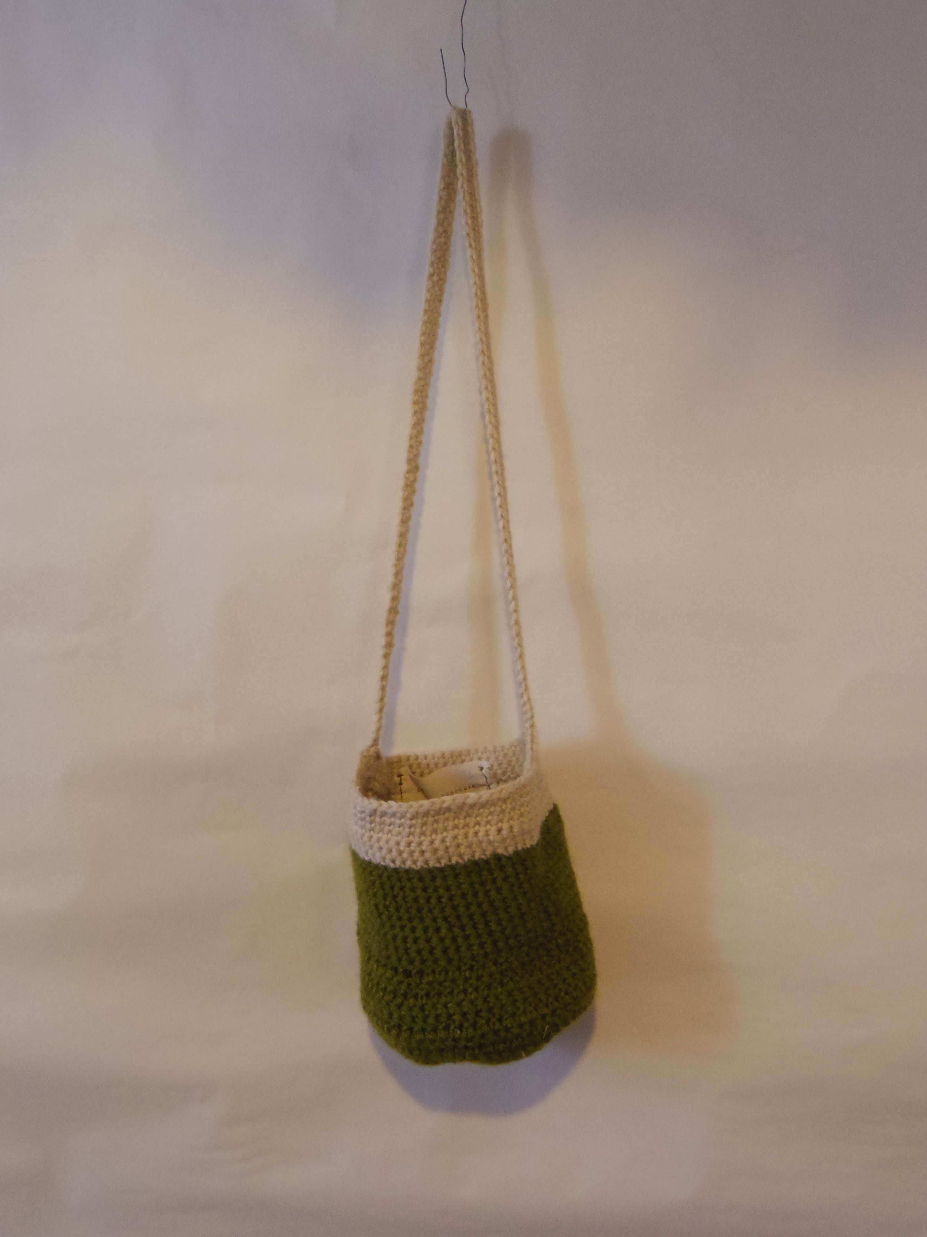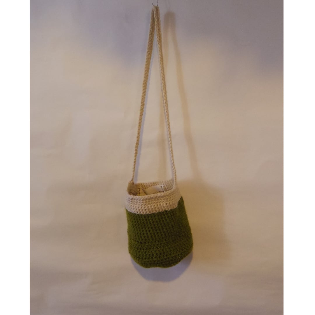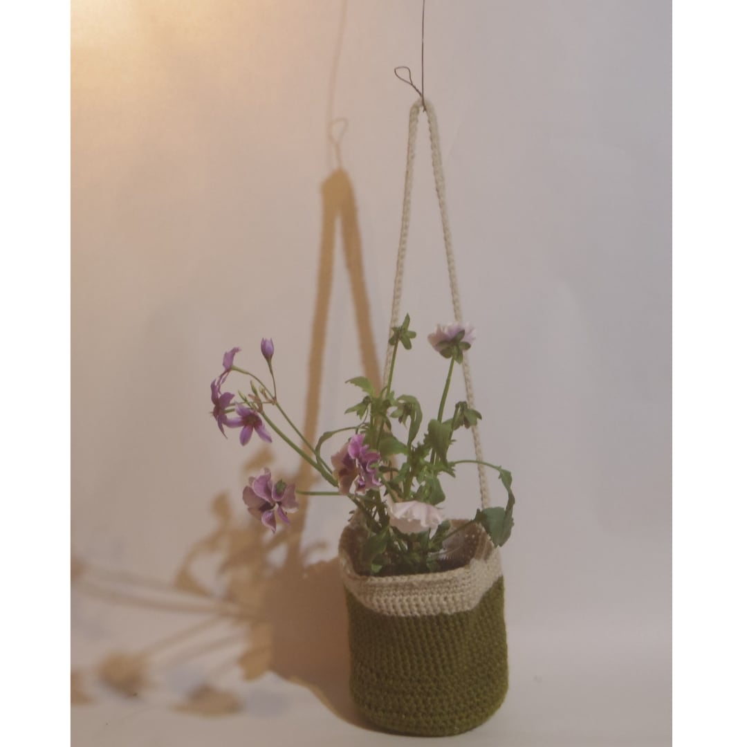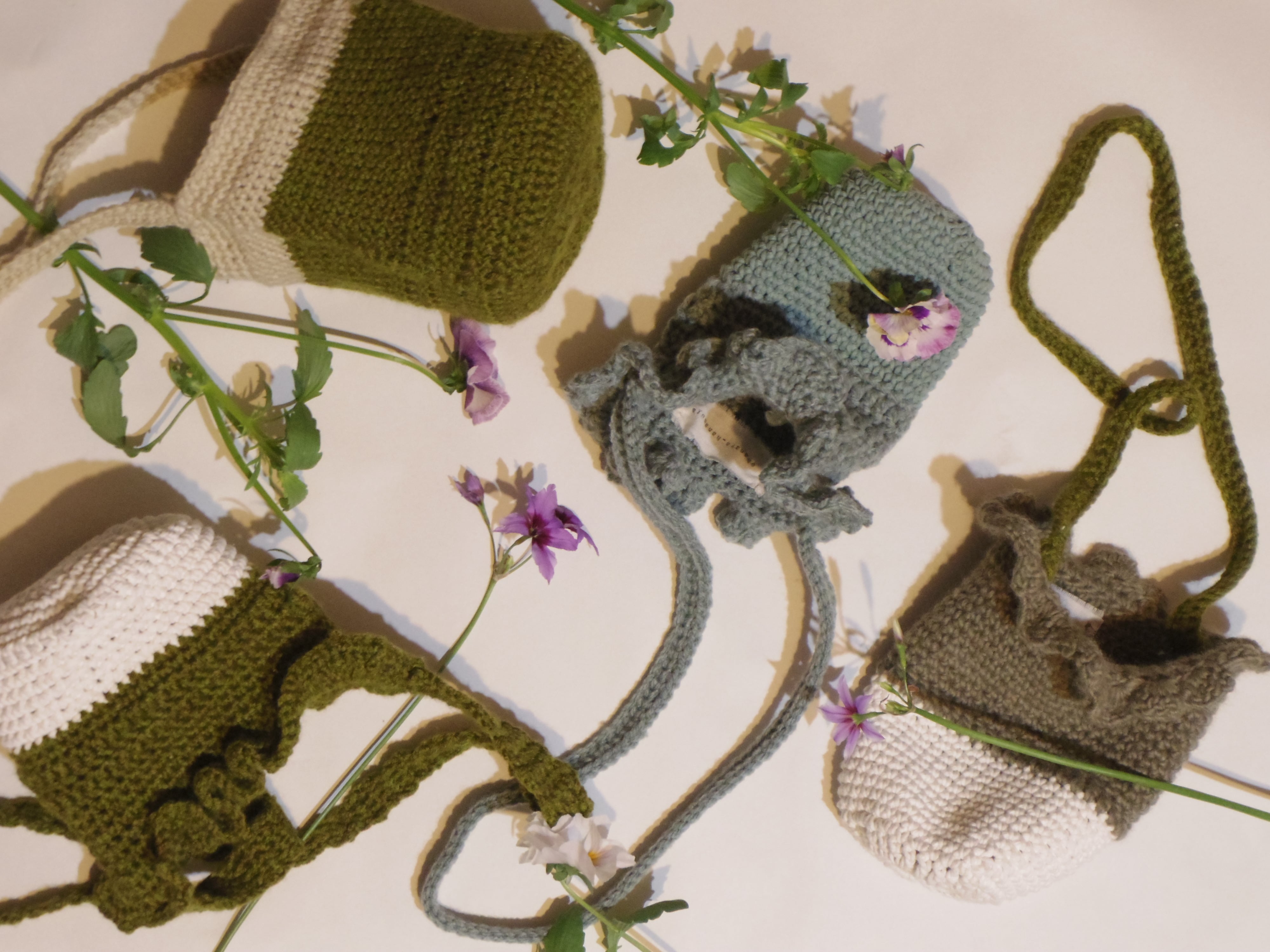 毛糸で編んだフラワーポーチ